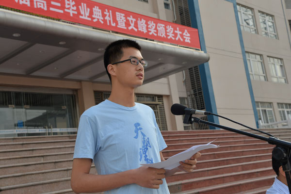 記得2014年的開學(xué)典禮,也是我在這里發(fā)言,竭盡全力寫了一篇發(fā)言稿,被老師改得面目全非,脫胎換骨。三年之后,我站在相同的地方,意識(shí)到了自己的成長。百年黃高,正如希臘神話中的西西弗斯,將一屆一屆的同學(xué)推向了更高遠(yuǎn)的天空。而我們,也有信心成為更加優(yōu)秀的人,為母校、為社會(huì)做出自己的貢獻(xiàn)。勸君莫惜金縷衣,勸君惜取少年時(shí)。畢業(yè)并不代表著我們與母校分離,而是意味著我們將帶著母校給予我們的成長,帶著母校賦予我們的希望和使命感,繼續(xù)上路,繼續(xù)發(fā)掘自身的潛力,去探索,去追尋。我們的力量是青春韶華,我們的征途是星辰大海!