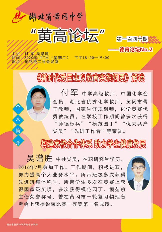 黃高論壇第140期:(德育論壇No.2):《新時(shí)代愛(ài)國(guó)主義教育實(shí)施綱要》解讀+構(gòu)建家校合作體系 助力學(xué)生健康發(fā)展