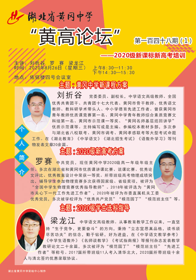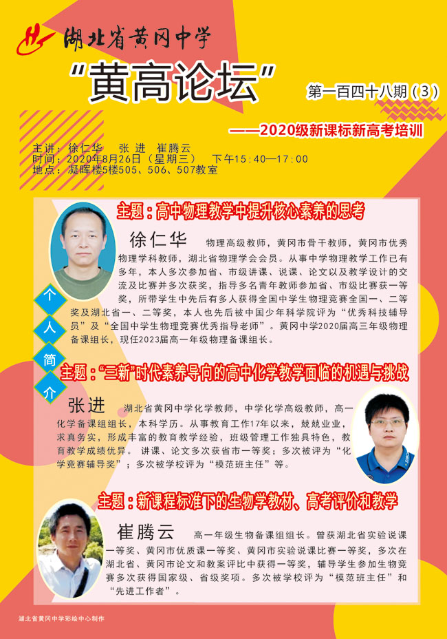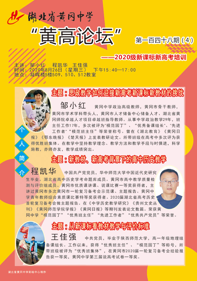 黃高論壇第148期:2020級新課標(biāo)新高考培訓(xùn)