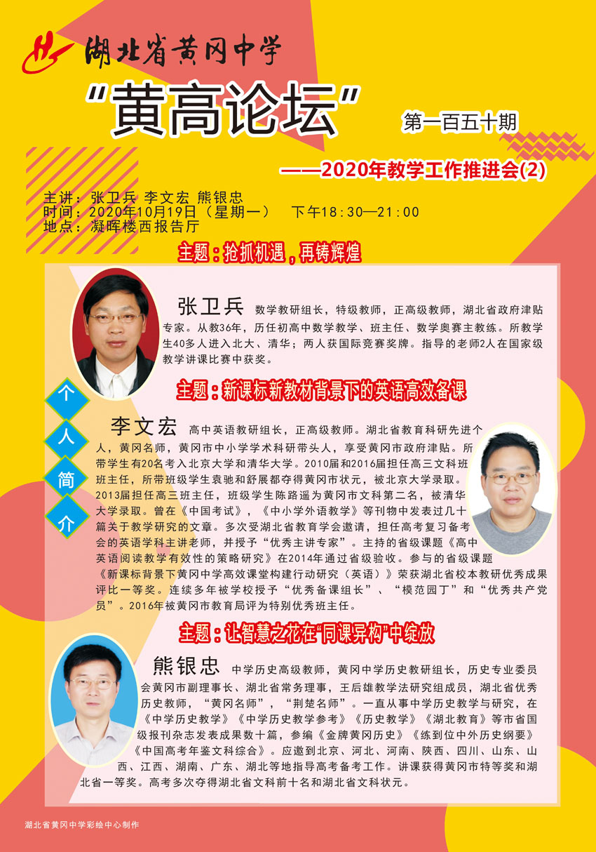 黃高論壇第150期:2020教學(xué)工作推進(jìn)會(huì)